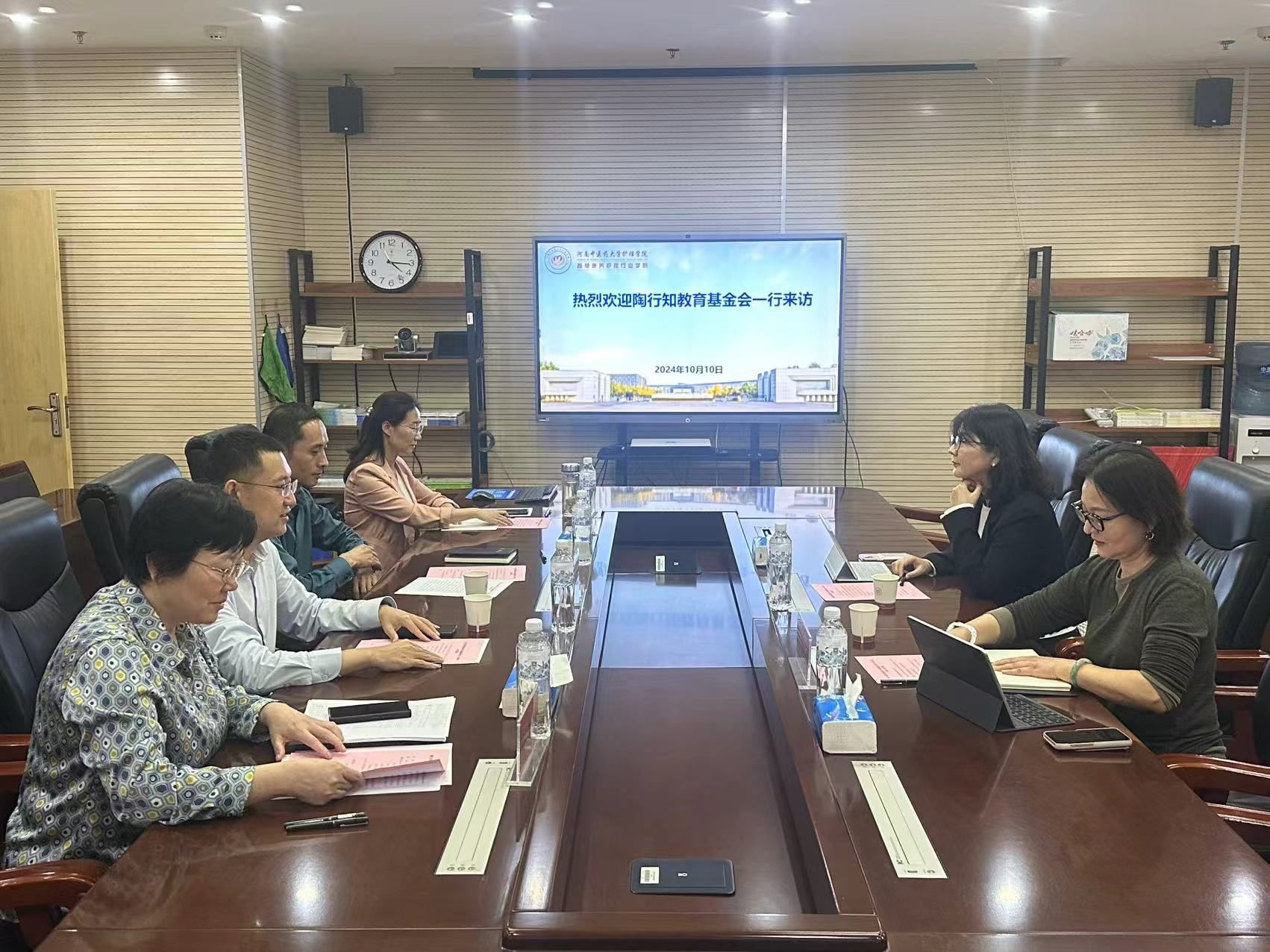 学院党委书记牛乐在致辞中对于会敏副秘书长一行的到来表示热烈欢迎,并介绍了学校和学院基本情况、护理专业设置和办学特色,指出此次交流将为学院护理专业的毕业生提供更多元化的发展机会,对提升学院人才培养质量具有重要意义。于会敏详细介绍了陶行知教育基金会的情况,对公益性国际就业帮扶平台启动背景、功能以及护理专业应届毕业生赴德国就业的要求及方式进行了说明。高磊介绍了万象城的人才培养、创新创业、就业工作等情况,希望双方加强交流,探索有效的合作模式,拓展新的就业渠道,为学生的多元化发展搭建平台。与会人员围绕如何加强合作、深化交流等方面进行了深入探讨,表达了对于加强国际合作交流的展望。最后,秦元梅在总结发言中表示,将深入研究如何更好的利用陶行知教育基金会的平台,并结合学院自身的资源,为学生创造更多的出国深造机会,努力培养具有国际视野的高素质护理人才。