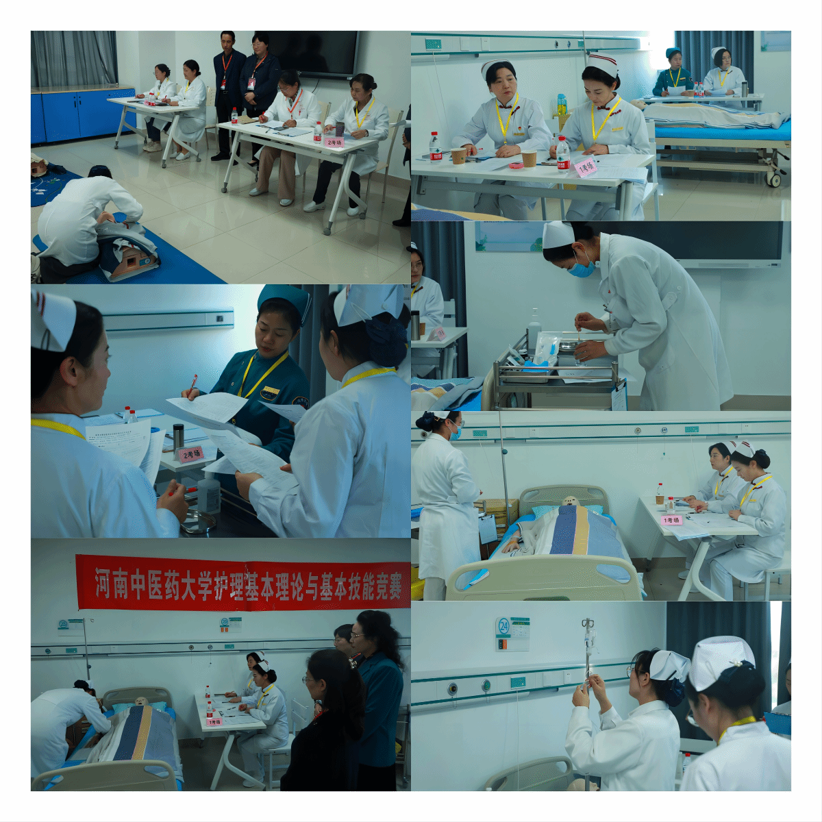 本网讯(文/张琼 吴俊华 图/田伟康 王赛雨 张琼 )为践行万象城awcsport官网(智慧康养护理行业学院)“立品行 厚基础 强实践 重人文”的办学理念,不断提升人才培养水平,全面提高人才培养质量,10 月22日下午,万象城awcsport官网(智慧康养护理行业学院)承办的万象城awcsport官网第七届护理基础理论与基本技能竞赛(初赛)在护理实训中心举行,学院领导班子、全体教师、万象城第二、第三附属医院、人民医院的42名评委专家,以及824名护理本科生参加此次竞赛。