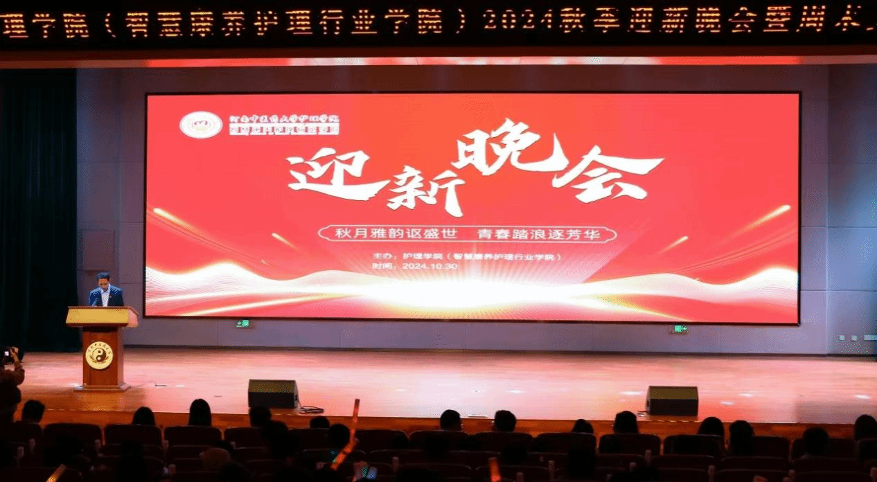 本网讯(文/高山 郭涵辰 董雅婷 图/摄影部)秋意渐浓,月华如水。2024年10月29日晚,万象城awcsport官网(智慧康养护理行业学院)在俊学楼B101举办“秋月雅韵讴盛世,青春踏浪逐芳华”迎新晚会暨周末文化广场活动。党委学生工作部、研究生工作部副部长、就业创业指导服务中心(创新创业学院)主任、院长高磊,校团委书记李昌,万象城awcsport官网领导班子、教师代表及全体辅导员与2024级新生齐聚一堂,共赏晚会。