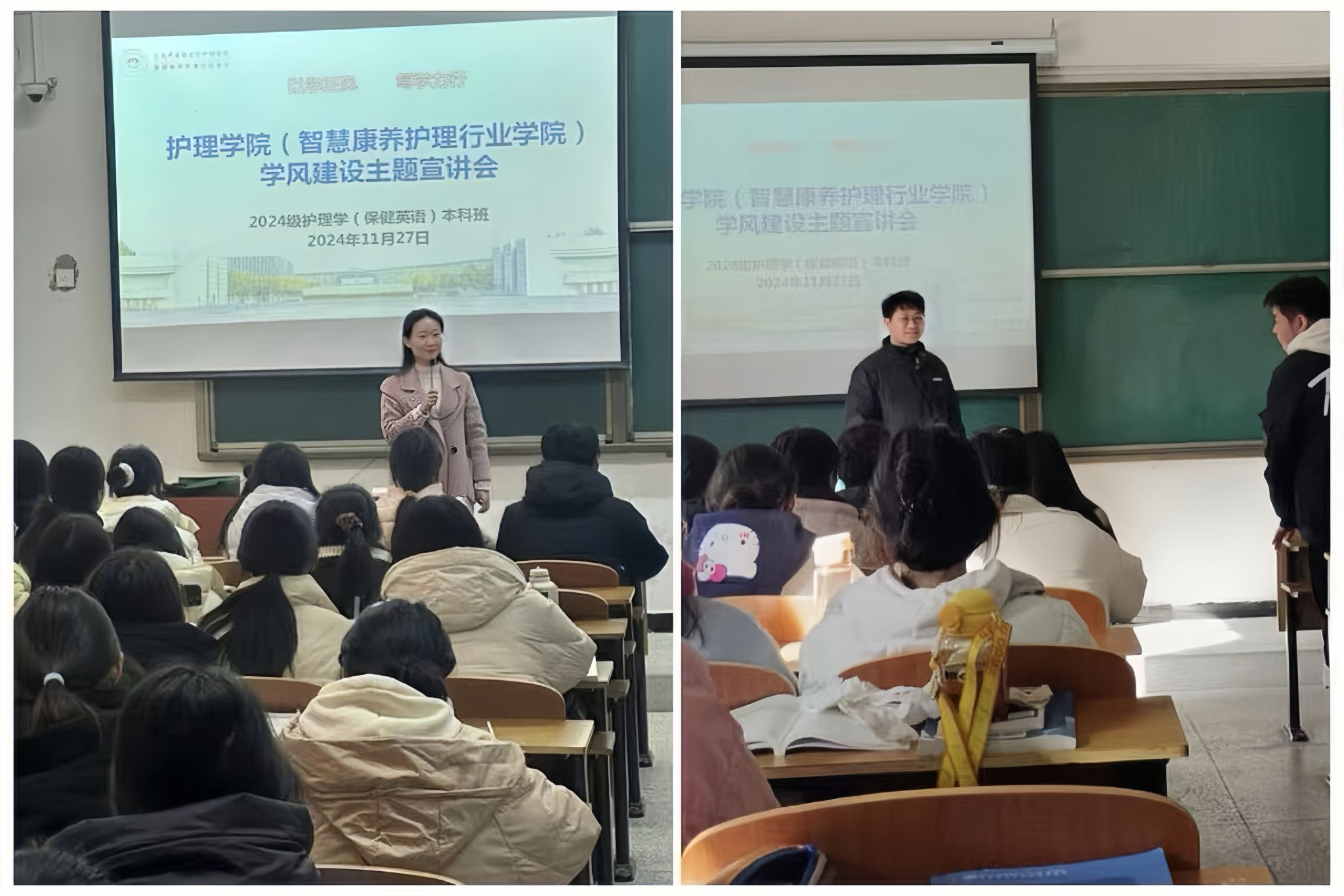 学院副院长、2023级护理学(保健英语)本科班班主任刘晓辉从加强思想政治引领、增强专业价值认同、树立正确学习态度、掌握科学学习方法等方面进行宣讲,要求青年学子严于律己,规范言行,增强立志学习上进的决心和信心,争取在学业目标上取得突破。此外,刘院长结合自身的成长经历和心路历程,鼓励青年学子永远保持一颗积极进取的心,树立“终身学习、终身奋斗”的意识,不给自己的人生设限,敢于面对挑战、勇于追求梦想。