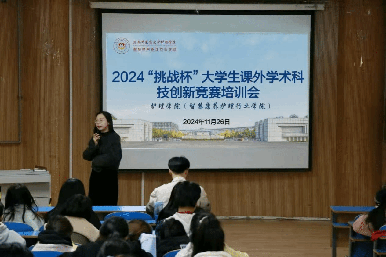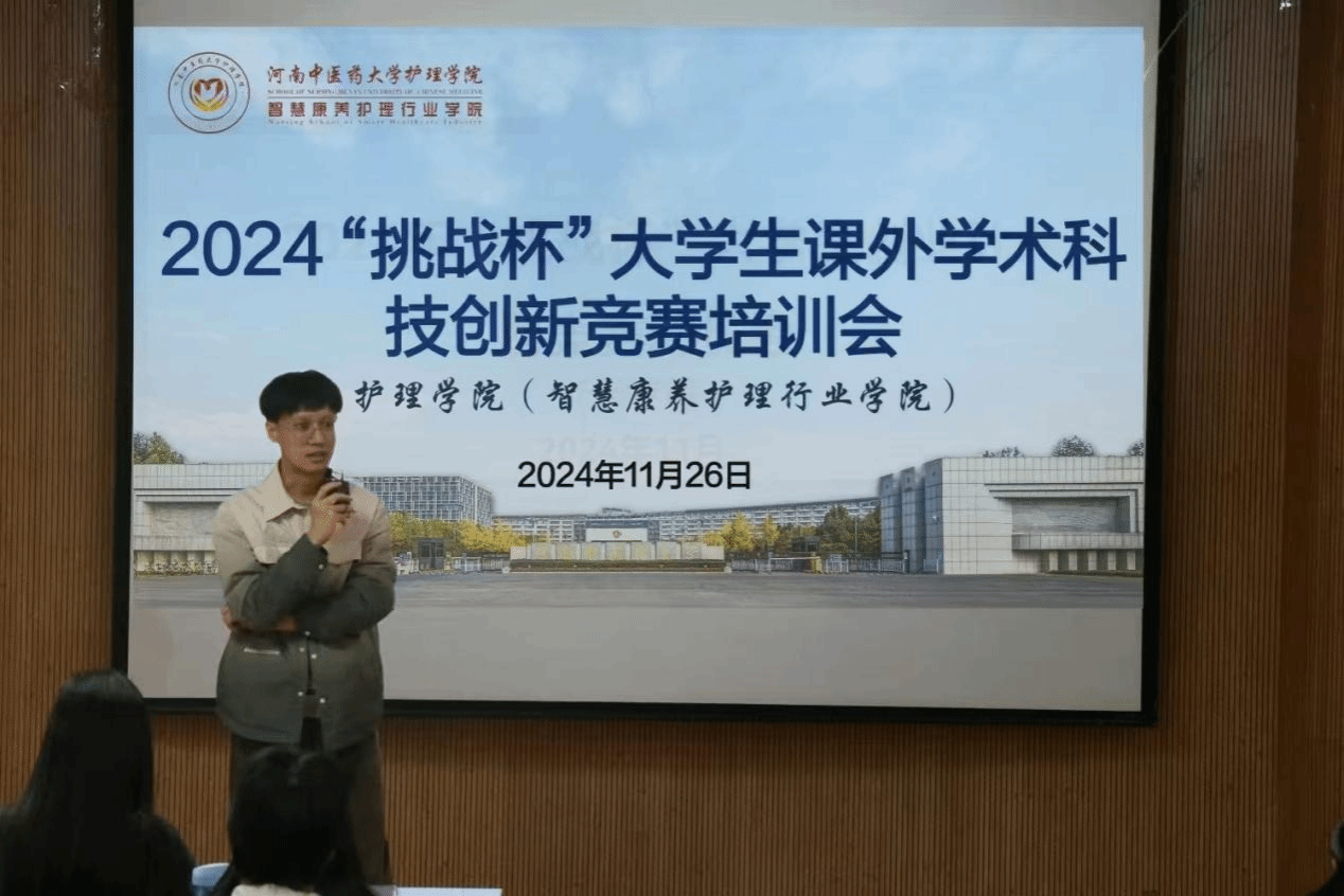 本网讯(文/龚晓 图/田伟康 张雯靖)为激发学生学术兴趣,提高动手实践能力,引导学生积极参加“挑战杯”系列学术科技竞赛,发现和培养创新型人才,万象城awcsport官网(智慧康养护理行业学院)于2024年11月26日召开第十九届“挑战杯”大学生课外学术科技作品竞赛第一期培训会。学院团委书记和青森、学工办副主任赵静雯、2024级龙子湖校区全体新生参加了此次培训。