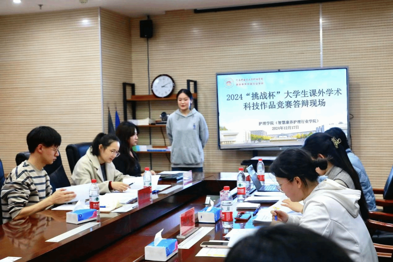 本次竞赛共收到25份参赛作品,经过前期专家小组的严格评审,共13份作品进入答辩。答辩分为选手展示、评委提问两个环节。选手们对项目的特色、亮点与成效进行了高度凝练和集中展示,展现了护理学子严谨务实的求知态度和敢于创新的精神风貌。评委老师针对不同作品的切入点、创新性、实效性进行了提问和点评,充分肯定了同学们的前期研究工作,指出了项目中存在的问题和不足,并提出针对性改进建议,鼓励同学们要把握好比赛机遇,将所学理论知识与实践操作相结合,在挑战中成长,在成长中收获。