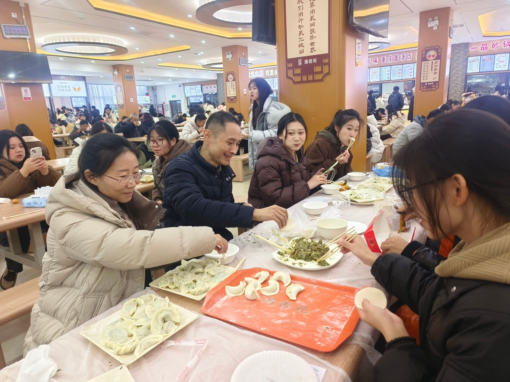 活动开始后,师生分工协作,活动现场忙中有序,气氛热闹而温馨,有的负责擀面皮,有的精心包饺子,欢声笑语此起彼伏。在众人的努力下,一个个造型精美的饺子在大家的巧手中诞生,经过讨论还评选出了“最佳造型奖”和“最美味饺子奖”。热气腾腾的饺子煮好后,师生围坐共同品尝美食,享受着劳动带来的美味与快乐。