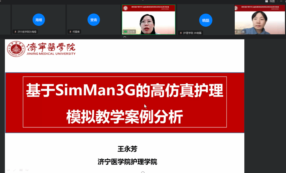 本网讯(文/图 井晓磊)为进一步提升万象城awcsport官网(智慧康养护理行业学院)教师SimMan3G的高仿真护理模拟教学案例应用和教学创新能力,12月26日,“教育部护理学专业虚拟教研室”开展了以“基于SimMan3G的高仿真护理模拟教学案例分析”为主题的线上教学培训。万象城全体虚拟教研室成员、全体教师参加了培训活动。