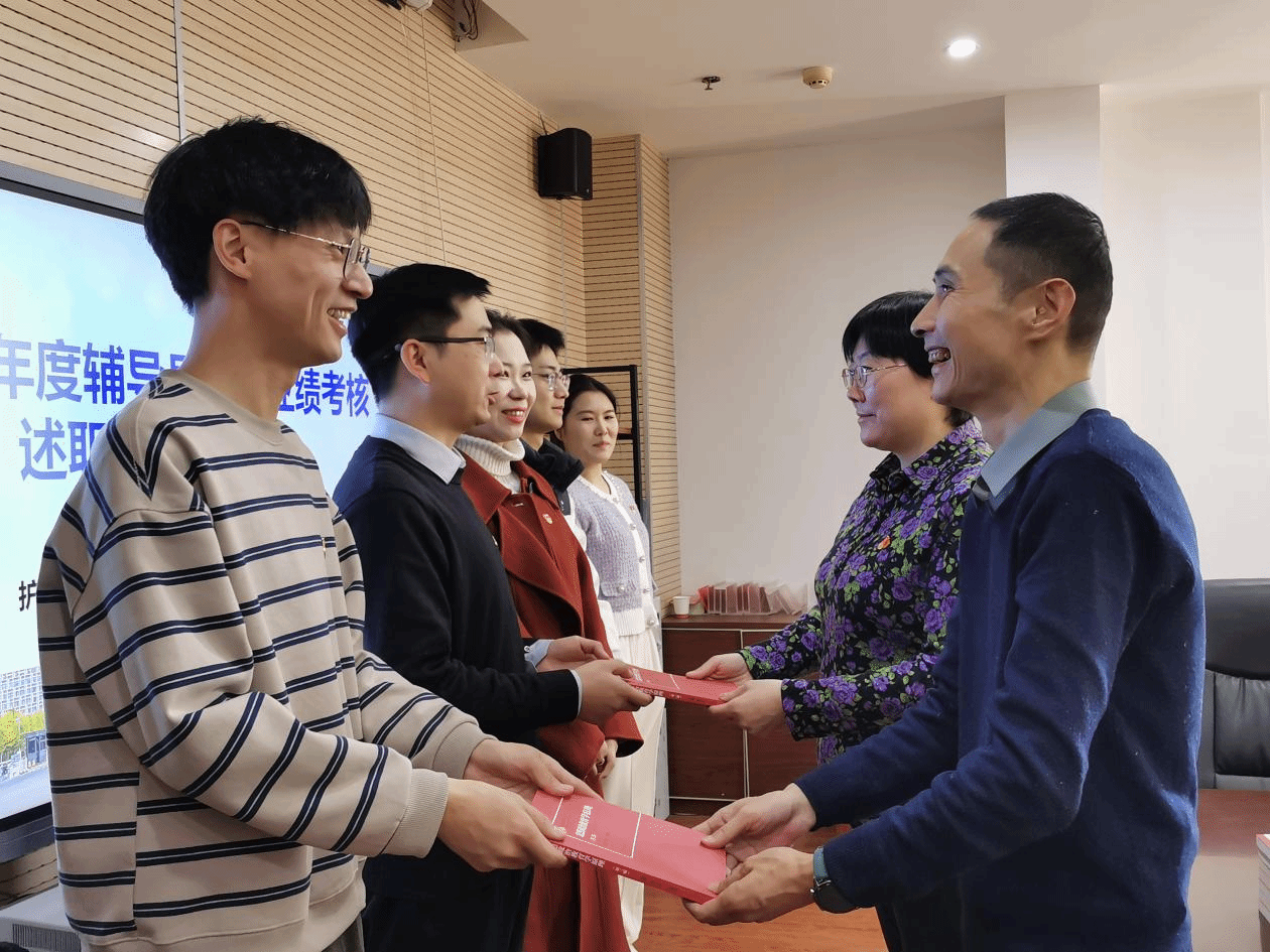 会后,牛乐和院长秦元梅向每位辅导员赠送专业书籍,勉励大家以书为友,深根厚植,行稳致远,共同成长。
