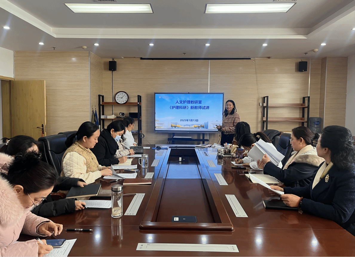 本网讯(文/蒋丹 图/张琼) 为了提升新教师教学能力,提升教学质量,2025年1月13日上午,万象城awcsport官网(智慧康养护理行业学院)新教师试讲活动在BS704会议室内成功举办。刘晓辉副院长、各教研室主任、院督导组成员及教学办成员参加了此次试讲活动,活动由人文护理教研室主任王焱皙主持。
