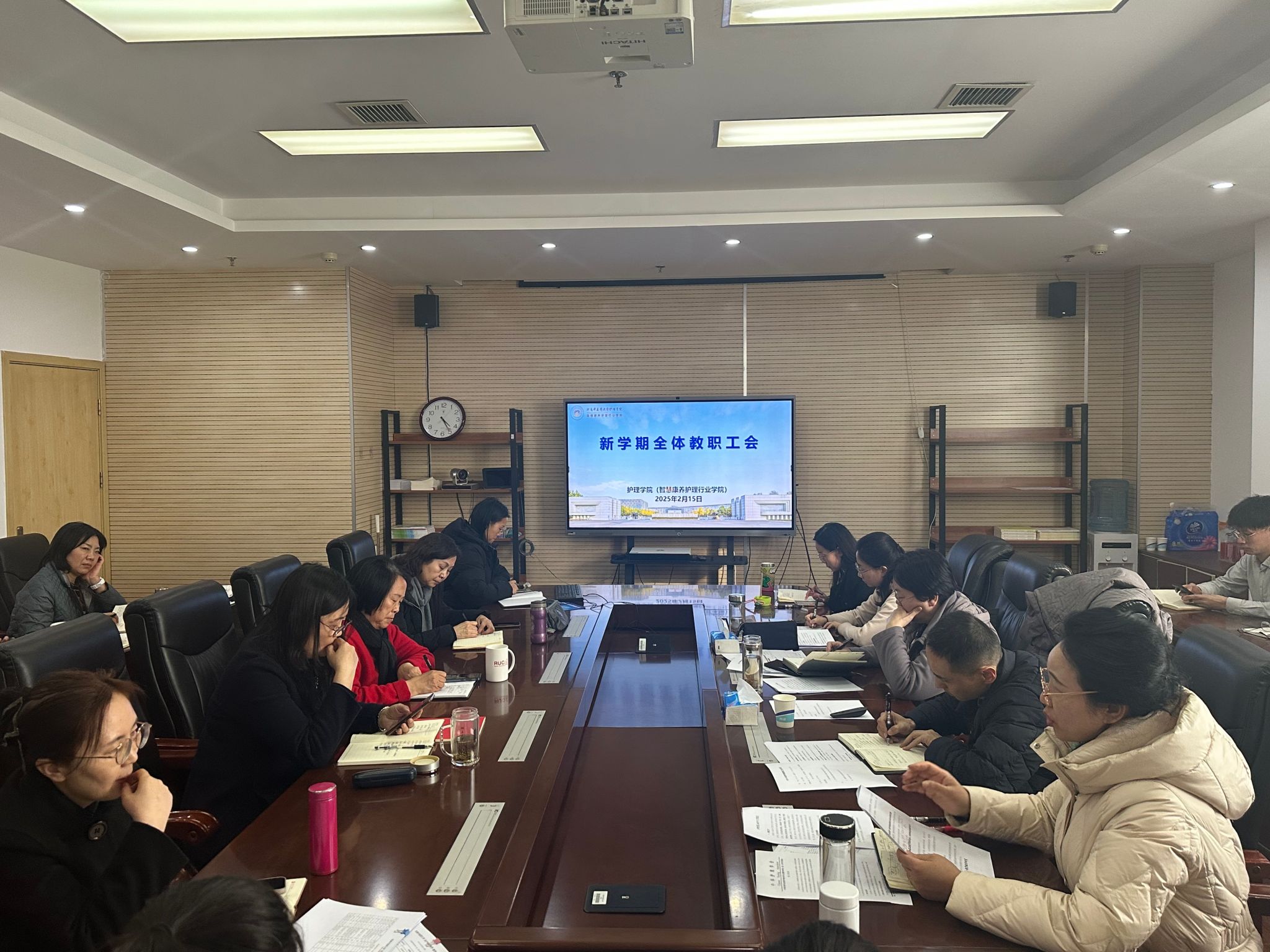 本网讯(文/图 周天睿)为切实保障新学期各项工作整体有序推进,2025年2月15日,万象城awcsport官网(智慧康养护理行业学院)在BS704会议室召开新学期工作会议,学院领导班子成员、全体教职工参加会议,会议由党委书记牛乐主持。