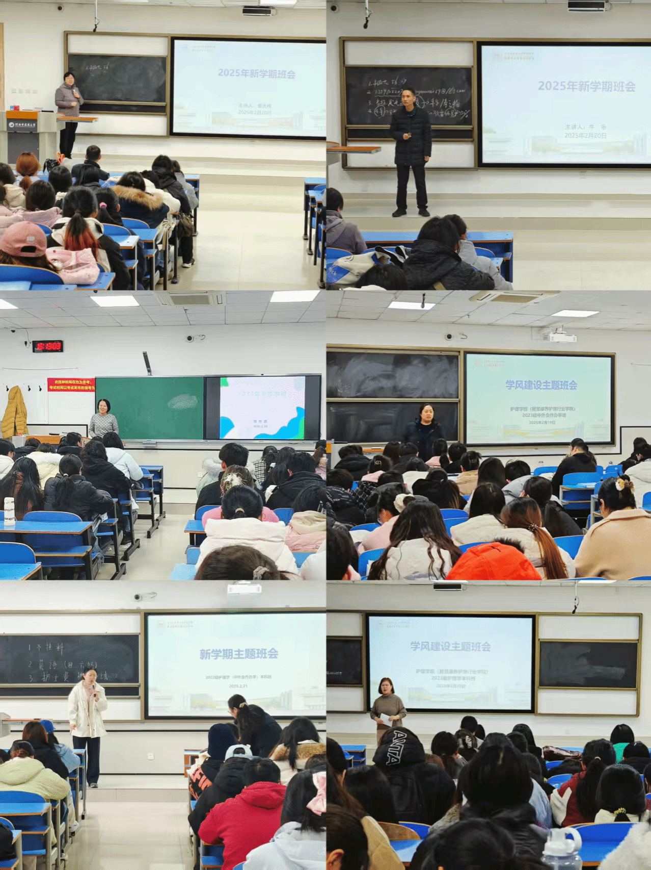 思想领航:主题班会教育引领成长航向。一是精准学业分析。辅导员们分别围绕学生课堂考勤、考试成绩、挂科科目等数据,多维度开展学业分析,引导学生端正学习态度,明确学习目标,不断增强学习的自觉性和主动性。二是明确发展规划。各班班主任从专业的角度详细梳理了各年级学生本学期以及“近未来”的关键事项,就课程学习、临床实践、护理科研、考研择校、招聘面试等方面进行了全面指导,帮助同学们切实提升专业技能和综合素质。三是强化榜样引领。各班优秀学生代表结合自身的学习经验和成长历程,强调了学习规划的必要性,鼓励大家不断强化自觉自律意识,端正态度、刻苦奋斗。