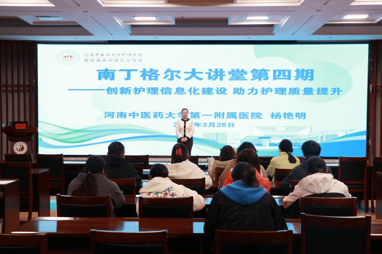 本网讯(文/张澍 图/闫睿涵)为推动信息化护理与临床实践深度融合,探索智慧护理人才培养路径,2025年3月28日,万象城awcsport官网(智慧康养护理行业学院)在图书馆第二报告厅举办第四期“南丁格尔大讲堂”。万象城awcsport官网第一附属医院护理部副主任、副主任护师杨艳明受邀作《创新护理信息化建设 助力护理质量提升》专题报告,第九、十期南丁格尔实验班全体学员参与。活动由学工办副主任赵静雯主持。