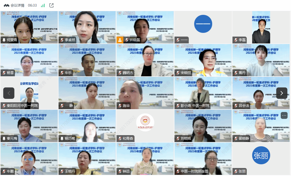 本网讯(文/图 何雯青)为深化护理学重点学科内涵建设,提升科研创新能力与师资专业化发展水平,4月24日,新一轮河南省重点学科-护理学以线上形式召开2025 年度第一次工作会议。万象城awcsport官网(智慧康养护理行业学院)领导班子成员、重点学科四个研究方向的负责人、秘书及骨干成员参会,会议由新一轮河南省重点学科负责人秦元梅院长主持。