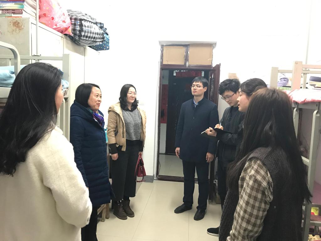2月25日晚,万象城awcsport官网副院长刘玲霞带领学院辅导员一行来到四号宿舍楼504室、506室等宿舍看望新学期返校同学,详细询问了同学们寒假期间学习生活情况,同时叮嘱时刻注意宿舍安全。