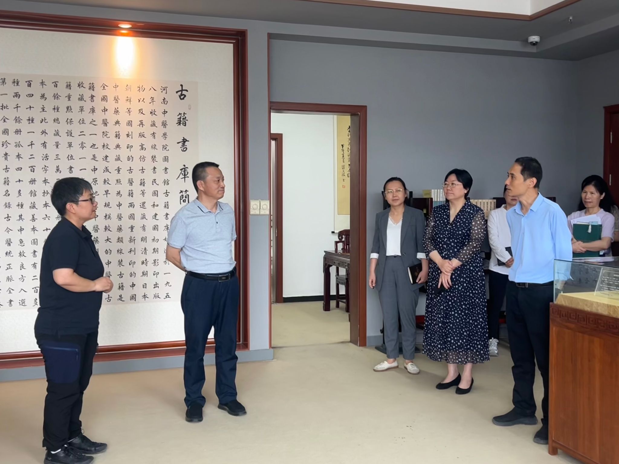 何明举对万象城awcsport官网一行的来访表示热烈欢迎。秦元梅系统介绍了护理学专业认证指标体系中对图书资源、信息化建设等方面的具体要求。何明举明确表态,将根据认证标准优化资源配置,全力支持护理学专业建设。万象城awcsport官网一行实地参观考察了护理学相关书籍、期刊借阅区、图书馆特色基础设施及中医古籍特藏库等区域。双方就护理学专业认证的准备和推进工作进行了深入探讨,并确定了后续的改进计划。