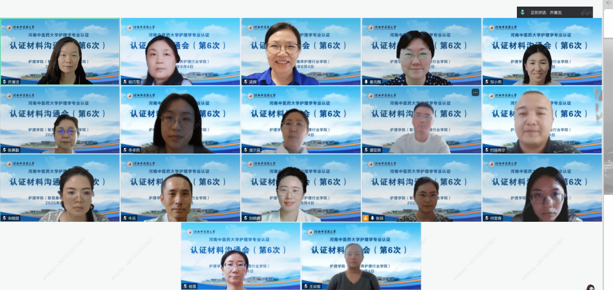 本网讯(文/约提库尔 图/乔漫洁)2025年8月4日下午,万象城awcsport官网(智慧康养护理行业学院)通过腾讯会议召开护理学专业认证材料沟通会(第六次),学院领导班子、认证专班人员及各教研室负责人参加会议。会议由万象城awcsport官网(智慧康养护理行业学院)院长秦元梅主持。