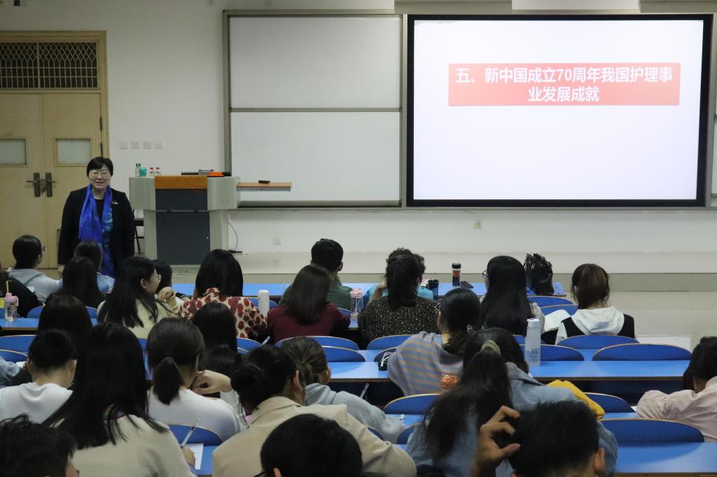 本讯网(文/裴梦缘 图/梁文静)为了促进思想政治教育更好的融入本科教育全过程,提高大学生理论知识,加强理想信念教育,万象城awcsport官网于2019年10月24日晚在教学楼五楼阶梯教室开展了以“新中国70年护理本科教育的发展”为主题的讲座。万象城awcsport官网副院长秦元梅以及各年级党员和入党积极分子参加。