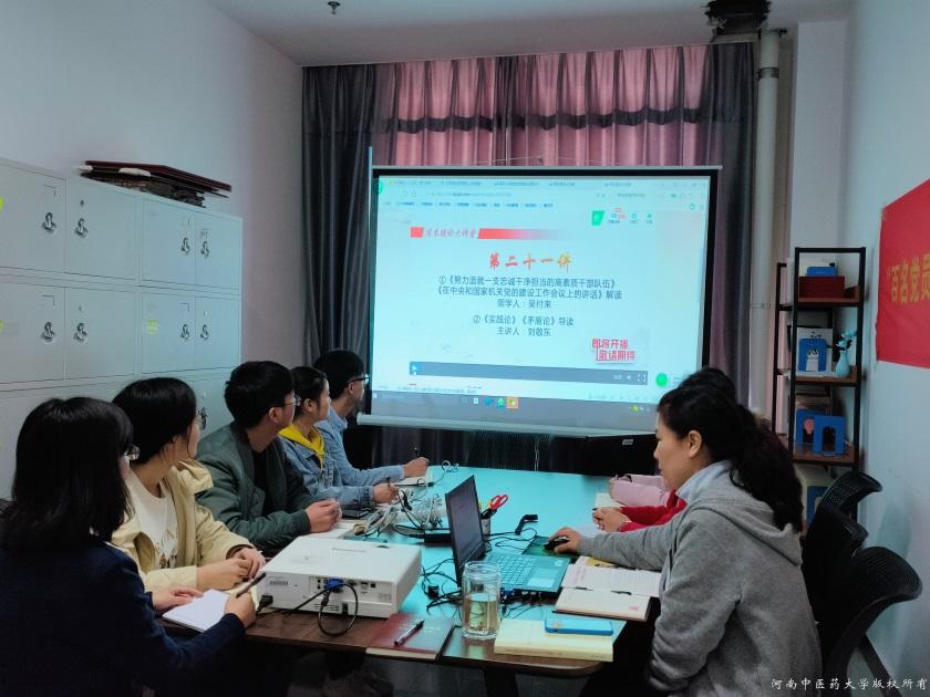 接下来,大家在线集体收看了中国人民大学学校纪委书记、马克思主义学院院长、北京高校思想中国政治理论课高精尖创新中心主任吴付来教授主讲的《努力造就一支忠诚干净担当的高素质干部队伍》、《在中央和国家机关党的建设工作会议上的讲话》解读和清华大学马克思主义学院教授刘敬东主讲的《实践论》、《矛盾论》在中国革命、建设和改革过程中的具体体现。