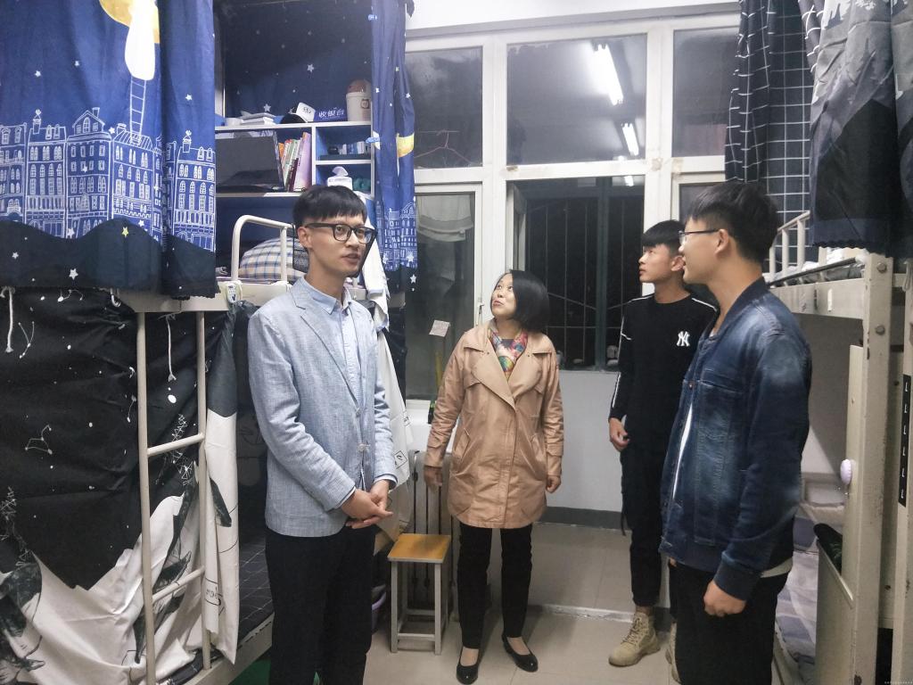 为了解学生宿舍生活,加强师生之间的交流,2019年10月24日晚,万象城awcsport官网副院长刘玲霞以及辅导员老师开展走访宿舍活动。