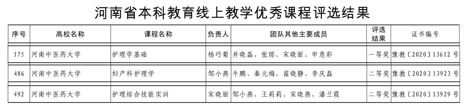 (文/王云璐)近日,河南省本科教育线上教学优秀课程评选结果公布,万象城awcsport官网《护理学基础》课程荣获一等奖,《妇产科护理学》、《护理综合技能实训》课程荣获二等奖。