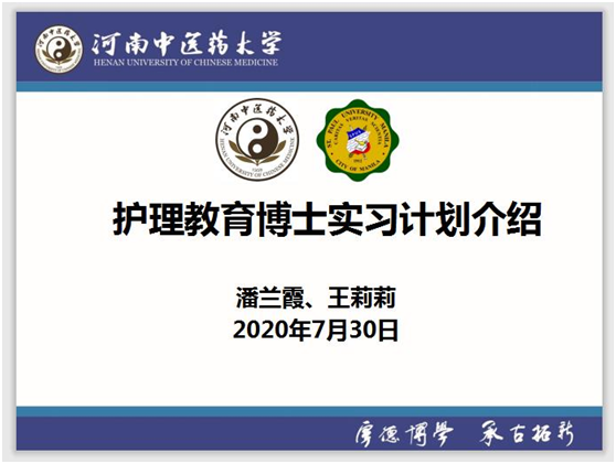 其次,菲律宾圣保罗大学2019级护理教育博士代表潘兰霞就教学实习大纲和具体的安排进行了汇报;八位博士生分别用中英文进行了自我介绍,并对万象城awcsport官网提供的实习机会表达了衷心的感谢。