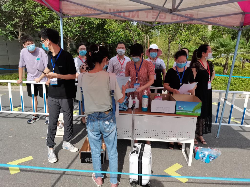 为全面加强返校保障工作,万象城awcsport官网杨英豪院长、马慧玲副书记、秦元梅副院长、刘玲霞副院长带领教职工一大早就守候在返校现场,热情迎接同学们返校。尹丽书记也来到了现场,并提出了工作要求。返校学生按照要求出示行程码及疫期返校码,配合老师进行体温检测,严格按照返校流程完成核验,检查无误后领取实习材料有序进入校园。