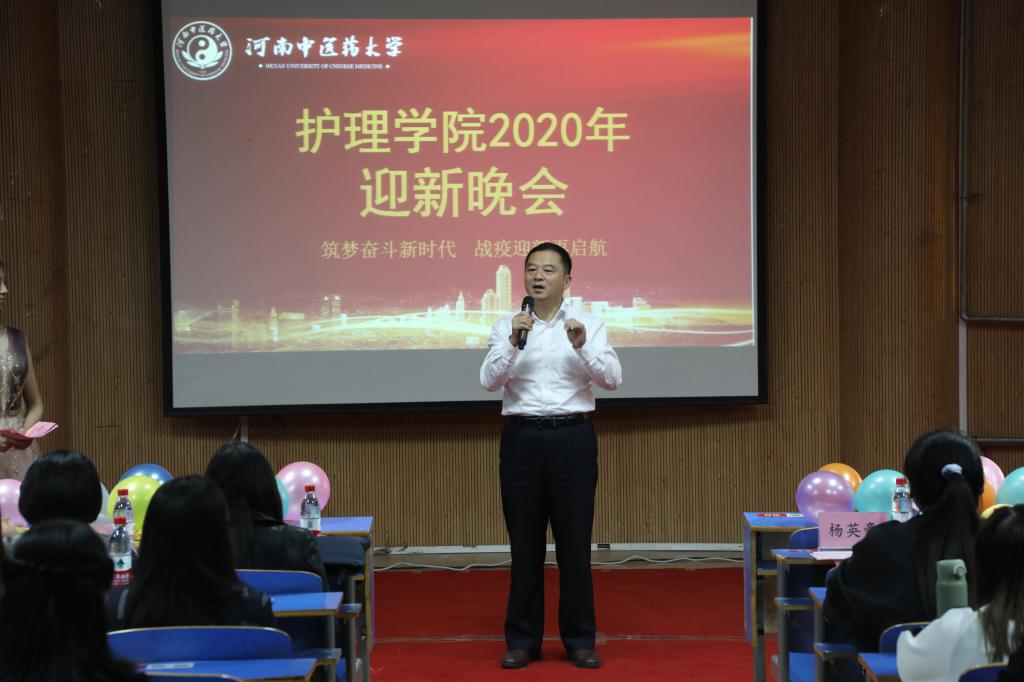 (图/钟晓晴 文/车易展)为欢迎2020级新生的到来,2020年10月20日晚上,万象城awcsport官网在教学楼A3多功能厅举办“筑梦奋斗新时代,战疫迎新再起航”晚会。万象城awcsport官网院长杨英豪,党委副书记马慧玲,副院长刘玲霞,学工办,团委全体老师,以及2020级新生300余人参加了晚会。