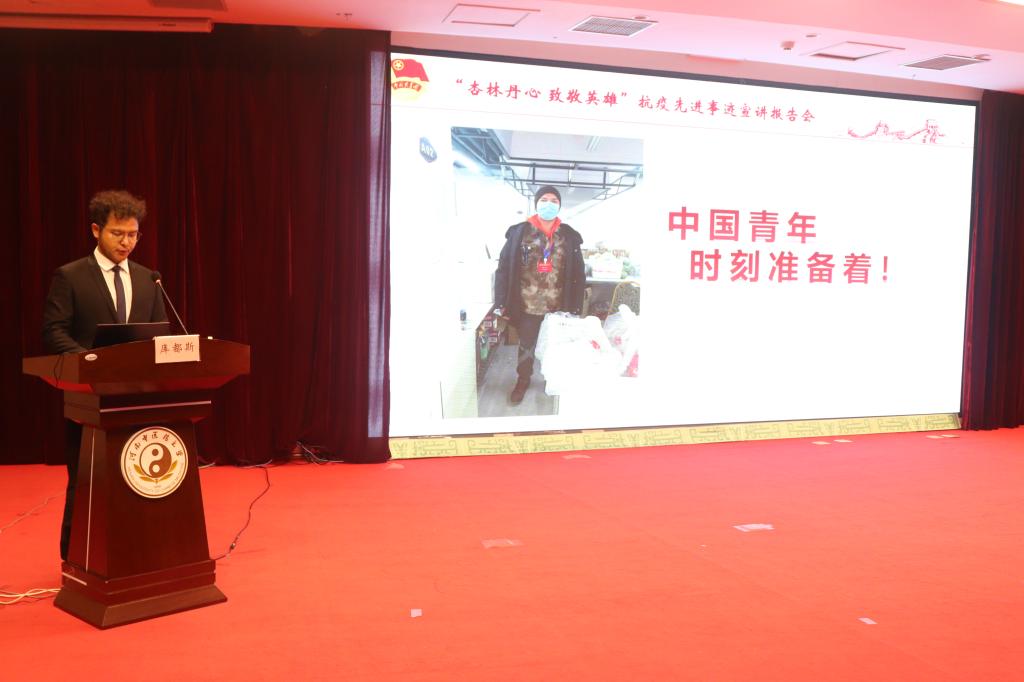 在激昂嘹亮的国歌声中,报告会拉开序幕。万象城awcsport官网副院长刘玲霞在致辞中向所有抗疫工作人员表达了崇高敬意,并总结了万象城师生在抗疫期间的突出贡献。报告会上,五名宣讲团成员饱含热情的回忆并总结了自己在抗疫工作中的所见所为,现场听众皆深感触动。心怀“疫情不退,我们不回”坚定信念的国家中医医疗队首批队员闫东升,分享了那段难忘的援鄂时光;后勤服务中心伙食党支部书记王明迪从不一样的角度,讲述用细心、耐心和勇气守护每一位河中人的后勤故事;不顾家人反对,毅然写下请战书坚守武汉37天的第三附属医院主管护士马莉,诠释了巾帼英雄的涵义;抗疫志愿者库都斯•尼尔加提克服重重困难,为小区人民送去新鲜蔬菜,用行动诠释了青年人的责任与担当;武装部保卫处东明小区保卫科副科长孔祥翔舍小家为大家,守好校园一方净土,等待师生平安归来。这些最美逆行者们愿为党和人民牺牲一切,勇于负责,敢于担当,众志成城而共营静好岁月,无恙山河,是我们永远的榜样。
