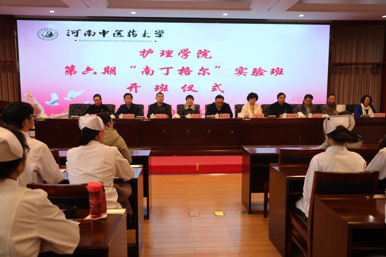 本网讯(图、文/陈思影)2020年12月4日下午,万象城awcsport官网于图书馆第二报告厅举办第六期“南丁格尔”实验班开班仪式。万象城awcsport官网党委副书记、工会主席张小平,校党委委员、副校长田力,第45届国际南丁格尔奖章获得者、柘城县人民医院护理部主任宋静,宣传部部长刘保庆、校团委书记高磊,学工部副部长、学生处副处长李志轩,科研处副处长余海滨、万象城awcsport官网全体领导、部分老师以及第六期“南丁格尔”班学生、学生代表参加了此次开班仪式。本次开班仪式由万象城awcsport官网刘玲霞副院长主持。