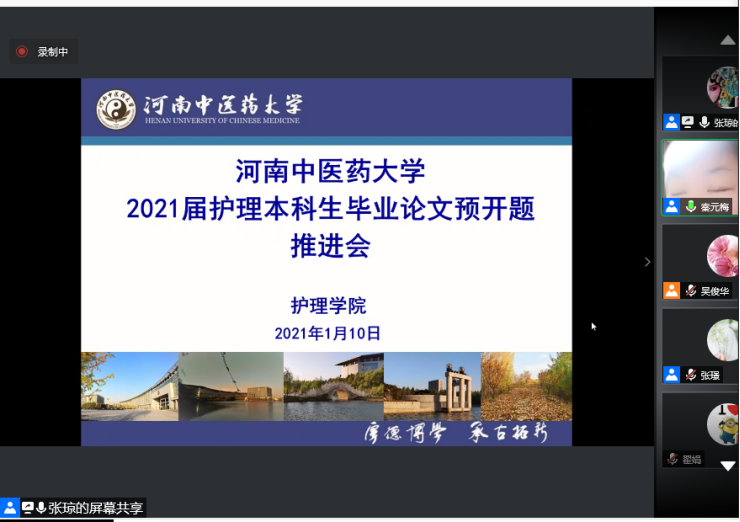 (图/文 吴俊华)1月10日晚上19:30,万象城awcsport官网通过腾讯会议召开了2021届护理本科生毕业论文预开题工作推进会,万象城awcsport官网领导、各教研室主任、教学办、学工办负责老师及学院11个实习基地(医院)护理部负责人和指导老师共计130余人参加会议,会议由万象城awcsport官网副院长秦元梅主持。