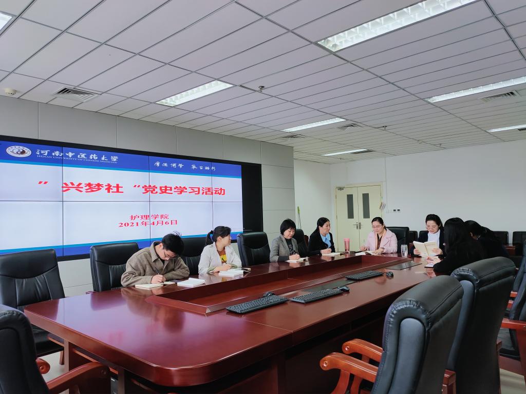 主题党日活动中,各党史学习小组组长带领大家学习了习近平总书记《论中国共产党历史》重要著作的部分篇目,小组成员结合自身工作畅谈学习感悟、交流学习体会。“求真社”赵珍珍同志谈到“灭人之国,必先去其史。”她讲到当前年轻人生来就享受着革命的伟大成果,无法感受过去的艰辛,所以一定要进行党史学习教育,尤其是在建党一百年,要用党的奋斗历程和伟大成就鼓舞斗志、明确方向,用党的光荣传统和优良作风坚定信念、凝聚力量,用党的实践创造和历史经验启迪智慧、砥砺品格,“求真社”全体成员共同朗诵毛泽东的七律长征;“初心社”刘文同志分享了《冰雕连的故事》和《长征路上的小故事》;“兴梦社”邹小燕同志给大家分享了半床棉被的故事并带领大家初步拟定了“兴梦社”调研问题:调研在校护理本科生存在的困难和亟待解决的问题。着手为学生办三件实事:1.为2017级本科生进行毕业论文写作指导和答疑;2.为2018级学生介绍实习单位情况、及考研相关问题;3.为2019级学生讲解暑假见习相关问题及临床人际沟通技巧。