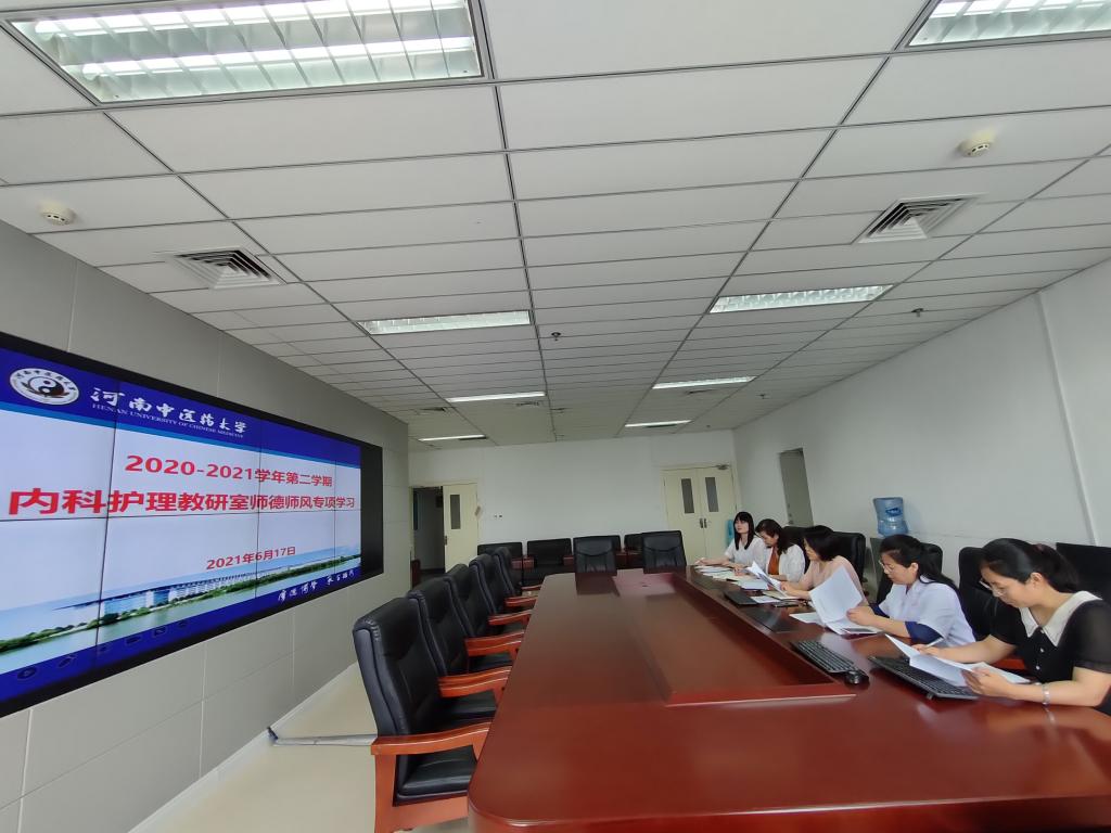 (文图/张璟)2021年6月17日,万象城awcsport官网内科护理教研室在实训楼1015会议室召开师德师风专项学习活动,副院长刘玲霞及内科教研室全体教师参加了此次会议。会议由内科教研室主任张勇勤主持。