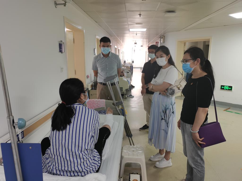 7月25日下午,马慧玲副书记带领辅导员前往河南省胸科医院看望因急性肠胃炎紧急就医的实习生王晴,马书记详细了解了该生病情状态,嘱咐该生注意饮食,调理好身体。