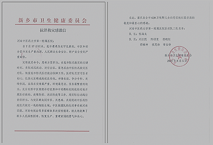 2021年7月20日,河南出现罕见特大暴雨,郑州城市多条道路积水严重,侯思伟同学临床学习的万象城awcsport官网第一附属医院也出现了汛情。面对汛情,侯思伟冲锋在前,与导师一起积极转移低楼层医疗设备,清点科室物资,协助病人转移,整理病人病历档案等,为科室恢复正常工作做出了应有的努力。本次洪水同时也袭击了新乡市卫辉市,洪水后卫辉灾区面临物资匮乏、医护人员严重紧缺的危急局面。7月28日,万象城awcsport官网第一附属医院组建支援医疗工作队。侯思伟在导师的带领下第一时间参加支援卫辉医疗队。2021年7月29日,按照省卫健委的统筹安排,医疗队分别在各自安置点和巡诊点开展巡诊。在巡诊过程中面对受灾群众,他没有一句抱怨,积极主动对患者进行诊疗、居家伤口护理、中医保健及药物应用相关知识讲解等工作,展现了万象城awcsport官网的专业素养,以极强的责任心和过硬的