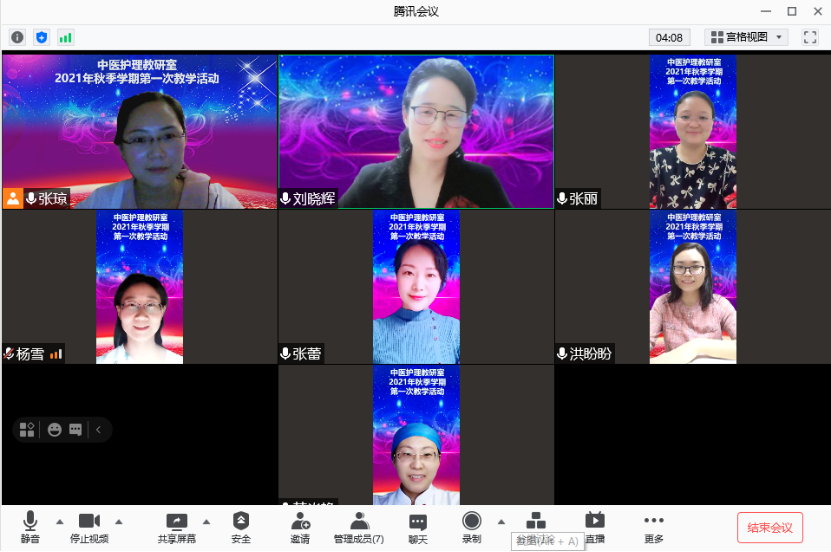 (文/图 张琼)9月2日晚20:00-22:00,中医护理教研室依托腾讯会议平台召开2021年秋季学期第一次教学活动,教学活动由中医护理教研室主任刘晓辉老师主持。