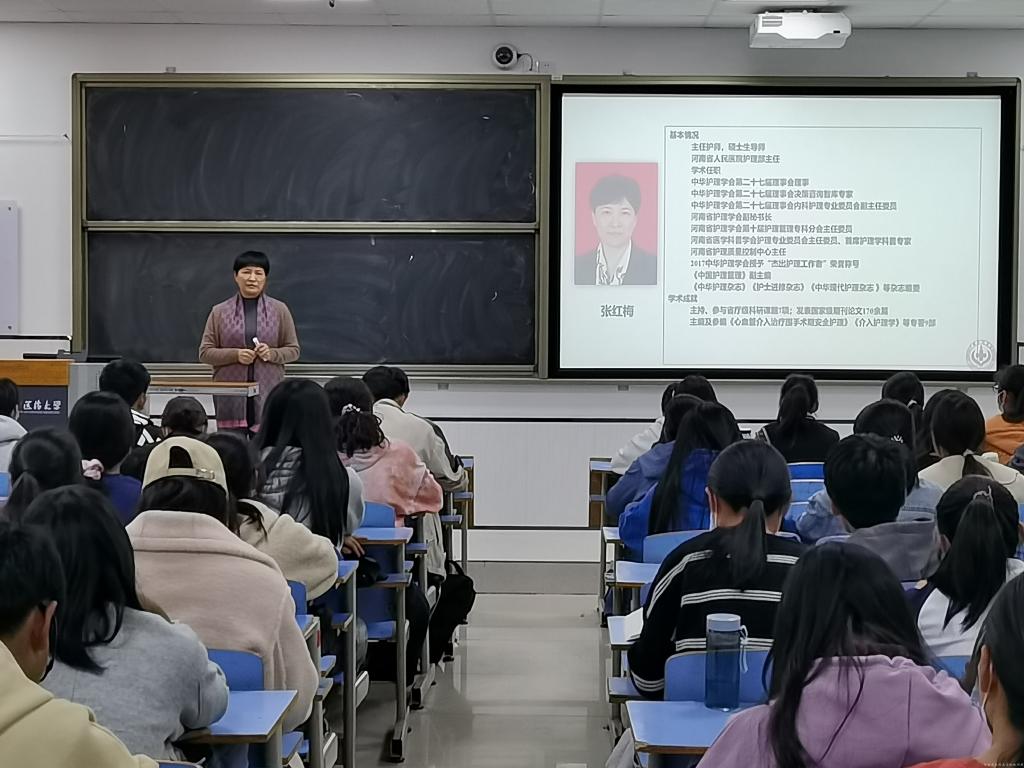 本网讯(文/图 张琼)为培养护理专业新生对护理学专业的认同感,牢固树立专业思想,万象城awcsport官网于11月24日、26日下午邀请河南省人民医院护理部主任张红梅为学生做《变革时代护士面临的挑战与机遇》专题讲座,万象城awcsport官网2021级新生240余人参加讲座。