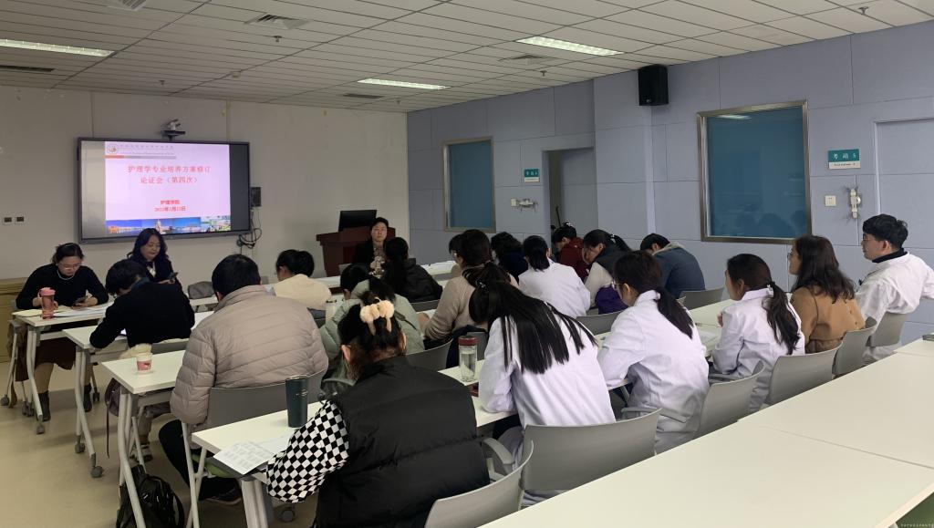 会议中,秦元梅副院长介绍了万象城awcsport官网专业设置情况、前期培养方案论证情况,并对参与培养方案论证的老师表示感谢;接着,专业负责人杨巧菊主任介绍了培养方案教学进程中课程修订情况,教学办张琼老师对修订细节进行解读;随后,与会老师就培养方案中课程设置修订情况一一进行讨论,对各课程的学时、学分、开设学期、考核方式提出中肯修改意见,医学院老师重点对医学基础课程、医学科研相关课程开课次序、学时学分设置提出修改意见;药学院、中医学院及第三临床医学院老师对中医药学基础课程,及中医护理特色课程教学内容进行讨论;外语学院老师重点对护理学(民族传统体育与保健英语)专业外语特色方向课提出修改建议;第一临床医学院老师主要针对《健康评估》课程理论、实训学时设置给出建议;万象城awcsport官网老师针对护理学专业课程设置进行了讨论。最后,杨巧菊主任总结,她表示万象城awcsport官网将对各院部老师提出的修改意见认真思考,对培养方案初稿再次修订、论证,切实保证培养方案对人才培养的指导性作用。
