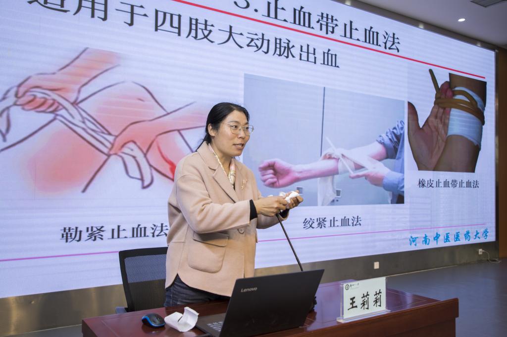 (图/谭亚楠 文/王莉莉)2022年3月7日,万象城awcsport官网党委副书记马慧玲一行六人前往郑州市第十一中学开展“学雷锋我行动”志愿服务活动,护理学科党支部支部书记杨巧菊教授、党员王莉莉参加了此次活动。杨巧菊教授以《心肺复苏术》为题,详细讲解了心肺复苏的现实应用、操作流程、重要意义等内容;王莉莉老师讲授了日常急救技术中的出血包扎、骨折固定等。讲座结束后,大家纷纷表示受益良多,期待有机会再次深入学习。