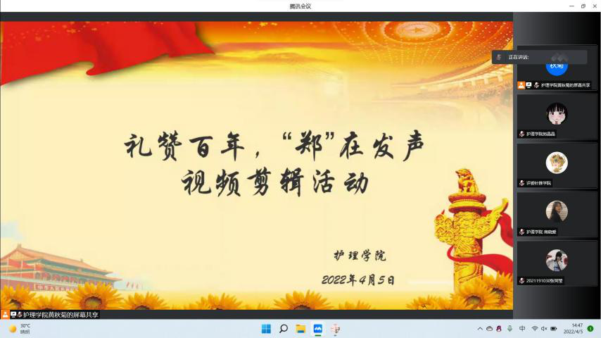 (文图/南晓爱)为纪念中国共青团成立100周年,引导青年团员“学党史,知团情”,加强青年团员意识教育,激励广大青年学生“高举团旗永远跟党走”。万象城awcsport官网于2022年4月5日,举行了“礼赞百年,‘郑’在发声”视频剪辑活动,由各学院组织部派一名学生代表担任本次视频剪辑比赛的评委。