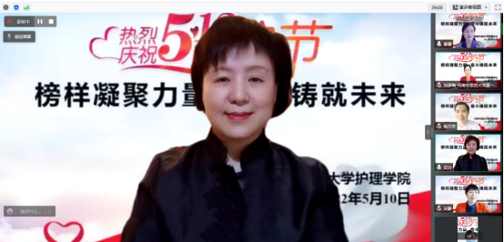 本网讯(文/张璟 图/张琼)为进一步弘扬南丁格尔人道、博爱、奉献精神,宣传广大护理工作者为守护人民群众生命安全和身心健康作出的贡献,激发护理工作者干事创业的工作热情,在第111个“5.12”国际护士节到来之际,2022年5月10日上午,万象城awcsport官网举行的“榜样凝聚力量,奋斗铸就未来”2022年国际护士节庆祝活动采用腾讯会议形式于线上举行。校党委委员、副校长田力,校工会副主席刘延江出席活动,第45届南丁格尔奖章获得者、柘城县人民医院护理部主任宋静,2022年“中华护理协会杰出护理工作者”获得者-万象城awcsport官网第一附属医院康复中心副主任刘承梅和阜外华中心血管医院护理部主任杨巧芳,学校各附属医院、部分实习基地的护理部主任、研究生导师与万象城awcsport官网师生们参加了此次活动。活动由万象城awcsport官网院长曹珊主持。