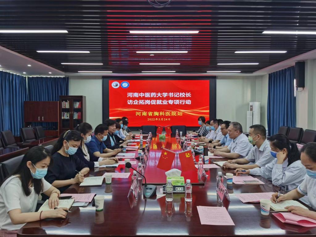 (文/图 谭亚男)为深入贯彻落实教育部、河南省教育厅关于开展高校书记校长访企拓岗促就业专项行动的要求和学校安排部署,拓宽就业渠道,高质量提升就业率,实现毕业生更充分就业,2022年5月24日上午,学校党委委员、副校长田力带领学生处、招生就业处、第一临床医学院、万象城awcsport官网相关负责同志一行赴河南省胸科医院走访调研,开展访企拓岗促就业专项活动。