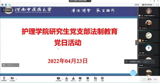 (图/王琳琳 文/张俊鹏)2022年4月23日,万象城awcsport官网研究生党支部开展了安全法制教育主题党日活动。支部全体党员积极参加了此次党日活动,活动由党支部书记吕素主持。
