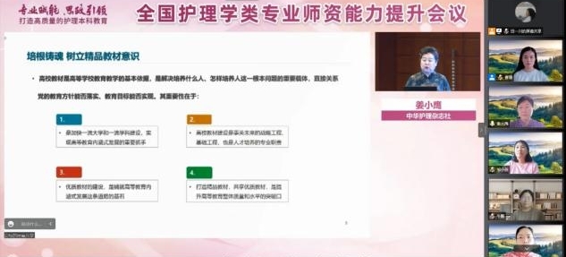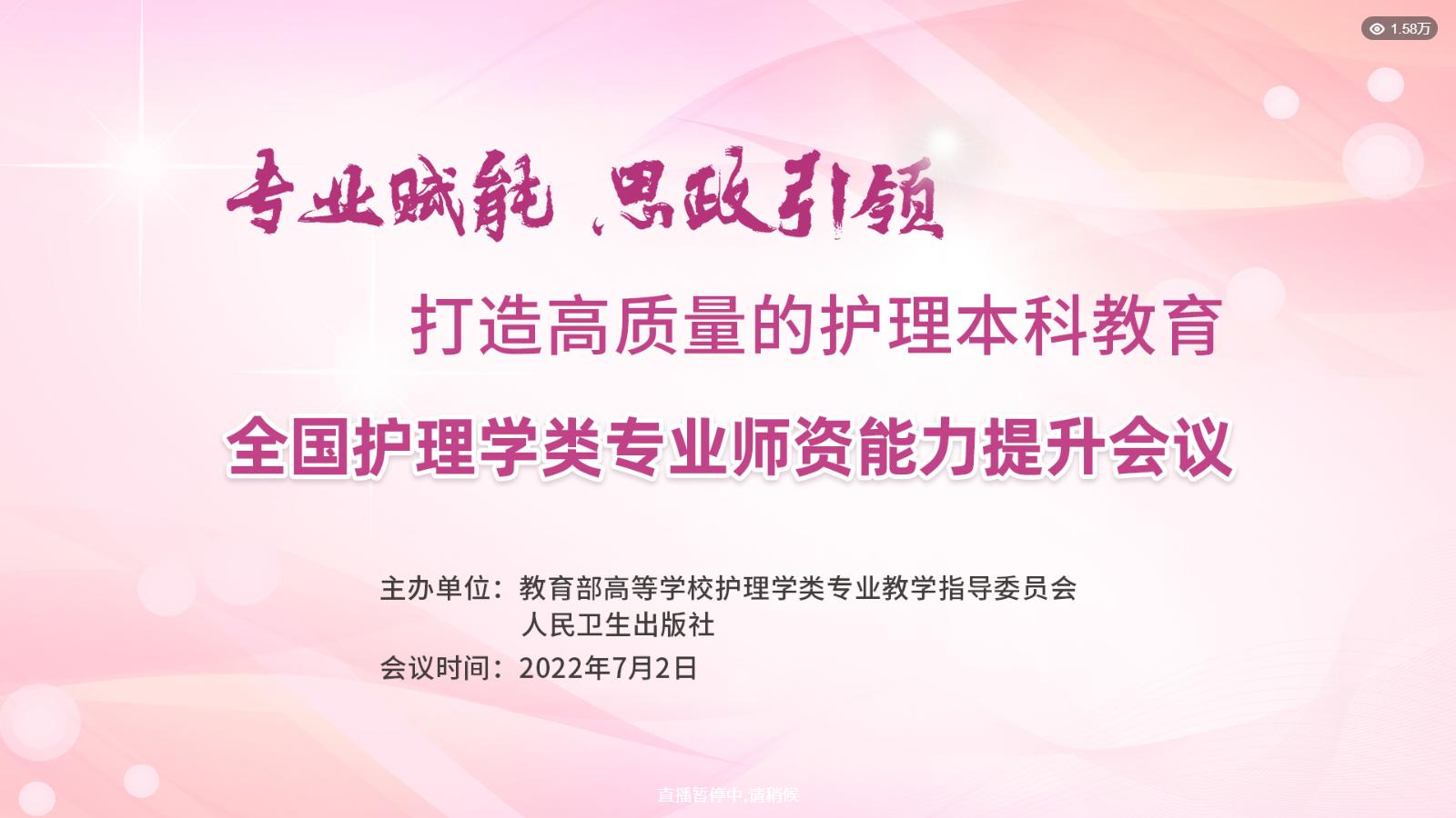 本网讯(文/张琼 图/秦元梅)7月2日上午,教育部高等学校护理学类专业教学指导委员会与人民卫生出版社共同线上举办“专业赋能、思政引领,打造高质量护理本科教育”主题全国护理学类专业师资能力提升会议,万象城领导、教研室主任及专兼职教师30余人收看了本次讲座。