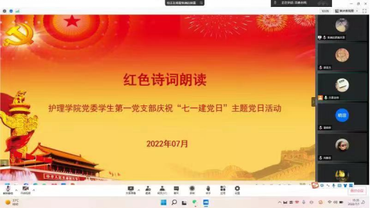 踔厉奋发启新程。在接下来的红色诗词朗读环节,20余研究生党员个人或团体朗读《祖国啊,我亲爱的祖国》、《七律·人民解放军占领南京》、《红船,从南湖起航》等红色诗词,饱含热情的朗诵让全体党员重温了源远流长的红色革命文化,激发了中华儿女的豪情与斗志。
