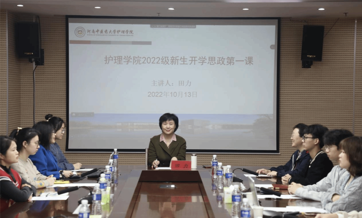 本网讯(文/高山 图/王政博、邱艺萌)为全面贯彻党的教育方针,落实立德树人根本任务,扎实推进学校关于上好“开学思政第一课”的工作要求,2022年10月13日上午,校党委委员、副校长田力赴万象城awcsport官网,通过线上线下相结合的方式讲授2022年秋季新生开学思政第一课并与师生一起座谈交流“我们这十年”感想体会,万象城awcsport官网党委副书记马慧玲、副院长秦元梅、学院辅导员、2022级研究生及本科生代表参加会议。会议由马慧玲主持。