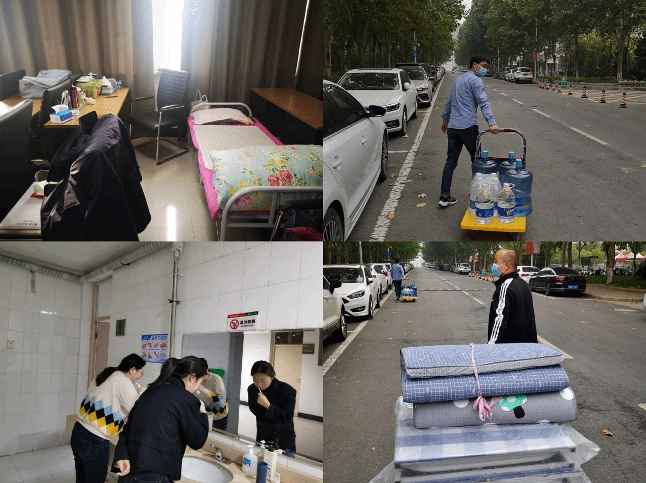 暖心陪伴为生、领导关爱为院、思想引领为国。作为学生成长道路上的知心人、暖心人、耐心人,疫情之下万象城awcsport官网辅导员班主任首当其冲,敢于做逆行者。用推车拉来物资、在办公室架起床铺,就这样开始了与学生同吃同住的日子,唯有陪伴是无声的力量。在这期间,万象城awcsport官网党委书记尹丽、院长曹珊多次为学工人员送来关爱与慰问品,关心关注在校学院学生,连同班主任们争相报名志愿者,要为隔离学生送去餐食和温暖。学院齐心协力,定能共战疫情。万象城awcsport官网时刻谨记立德树人的使命,疫情期间毫不放松对学生的思想引领,学工人员驻校期间多次召开疫情防控会议、主题班会传达学校疫情防控要求,同时积极开展爱国教育引导学生在特殊时期,常怀感恩之心,为疫情防控阻击战贡献青春力量。