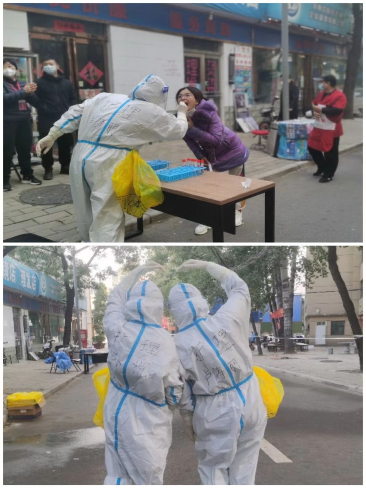 培训后,化身“大白”的党员志愿者先锋队队员们精神饱满的投入到紧张的工作中,为东明校区4栋住宿楼的学生以及疫情防控专班人员和“三保”人员进行核酸采集。穿着厚重的防护服,一层一层爬楼,逐个宿舍采集,从未有任何一个队员抱怨。防护服包裹下,她们手上的压痕、脸上的汗水成了“标配”,然而这些“最美”的见证也深深地印在校区师生的心里。截至目前,共计采样7000余人次。