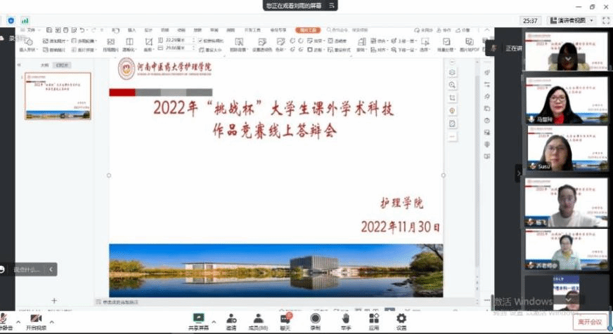 (图文/米家莹)为强化学生科研创新意识、创新热情、实践能力,着力培养科研创新型人才,万象城awcsport官网在前期动员发动、培训指导、初步选拔的基础上,遴选出28项优秀“挑战杯”作品,于11月30日晚,举办2022“挑战杯”大学生课外学术科技作品竞赛线上答辩会。学校科技处徐华明副处长,万象城awcsport官网党委副书记马慧玲,教学办、科研办、学工办等教师代表出席并担任评委,全院各年级学生代表一百余人参加竞赛活动。