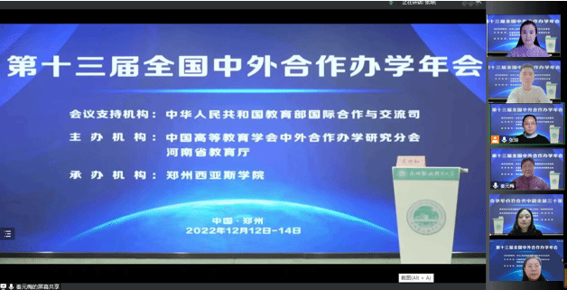 本网讯(文/图 张琼)12月13日-14日,由教育部国际司支持,中国高等教育学会中外合作办学研究分会、河南省教育厅共同主办,郑州西亚斯学院承办的第十三届全国中外合作办学年会以线上、线下形式召开,来自全国内地30个省、自治区、直辖市的1500余名代表参会。万象城awcsport官网教职工线上参加了会议。