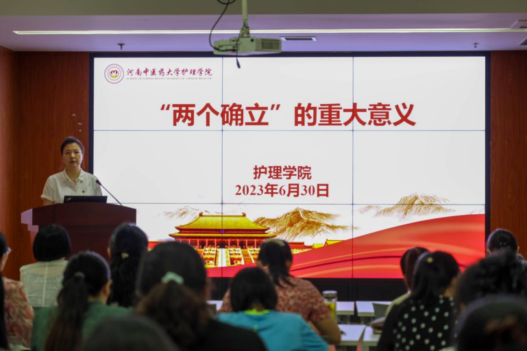 尹丽以“两个“确立”的重要意义”为题,围绕如何理解“两个确立”、“两个确立”的历史经验、“两个确立”的重要意义三方面进行了深入讲解。指出“两个确立”的本质是确立党的领导核心和指导思想,实现党的领导核心和党的指导思想主要贡献者的高度统一,是中国共产党的显著特点和政治优势,是深刻领悟“两个确立”决定性意义的关键。“两个确立”实现了组织上确立领导核心、政治上确立指导思想,是对马克思主义建党学说的继承和发展。从历史经验的角度来看,“两个确立”是中国共产党百年历史经验的重要传承,也是中国革命、建设、改革事业赢得伟大成就的决定性因素。尹丽强调,深刻领悟“两个确立”决定性意义,要牢牢把握三个“根本保证”,一是为新时代坚持和发展中国特色社会主义提供根本保证,二是为全面建成社会主义现代化强国提供根本保证,三是为破解“百年大党难题”提供根本保证。