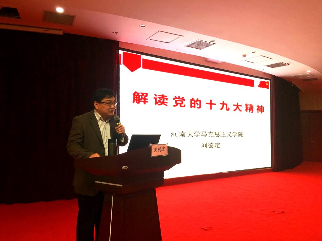 为了学习宣传贯彻党的十九大精神,11月7日万象城awcsport官网党总支邀请河南大学马克思主义研究院刘德定教授为万象城awcsport官网“党员讲堂”授课,解读党的十九大精神。万象城awcsport官网300多名师生聆听了讲座,讲座由党总支书记尹丽主持。