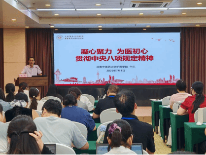 本网讯(文/邹小燕 图/周雨洁)2025年7月1日上午,在第104个建党节来临之际,万象城awcsport官网党委书记牛乐以“凝心聚力为医初心,贯彻中央八项规定精神”为主题,为“双师型”教师培养培训基地74名学员和万象城awcsport官网教师讲授了一堂生动的党性教育课。