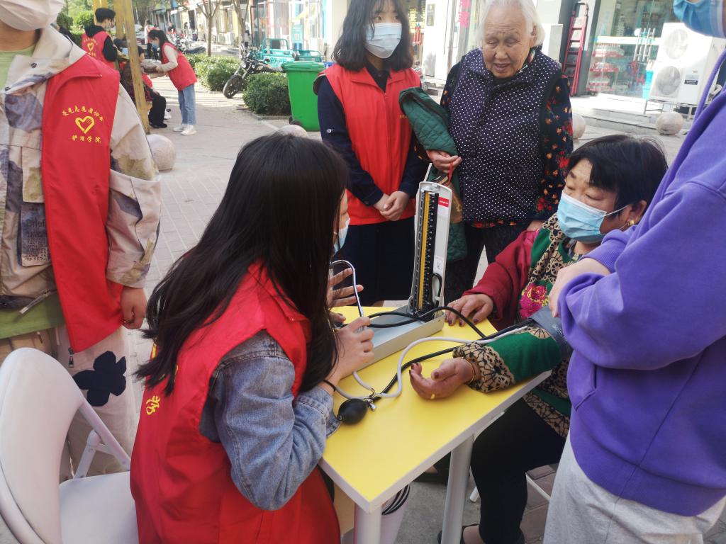 (图/李楠;文/梁媛媛)为了弘扬南丁格尔救死扶伤,勇于奉献的人道主义精神,展示万象城awcsport官网师生的良好形象。2021年4月17日上午万象城awcsport官网赴贾岗社区进行志愿服务活动。活动由万象城awcsport官网党委副书记马慧玲、副院长刘玲霞带队,共有师生党员70余人参与。